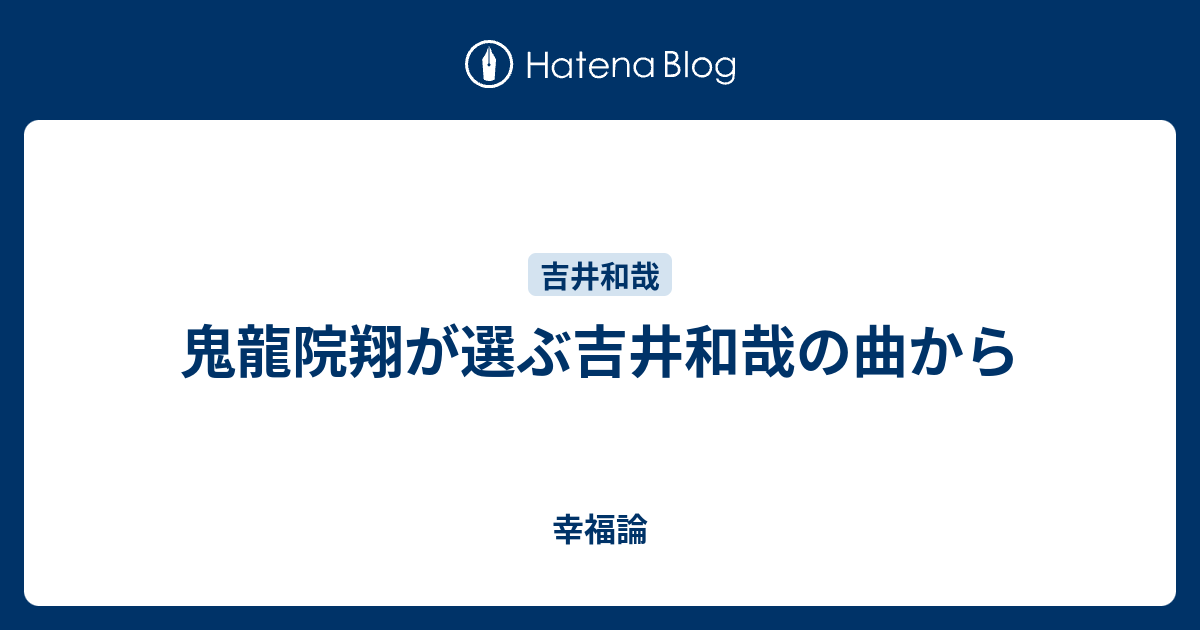 鬼龍院翔が選ぶ吉井和哉の曲から 幸福論
